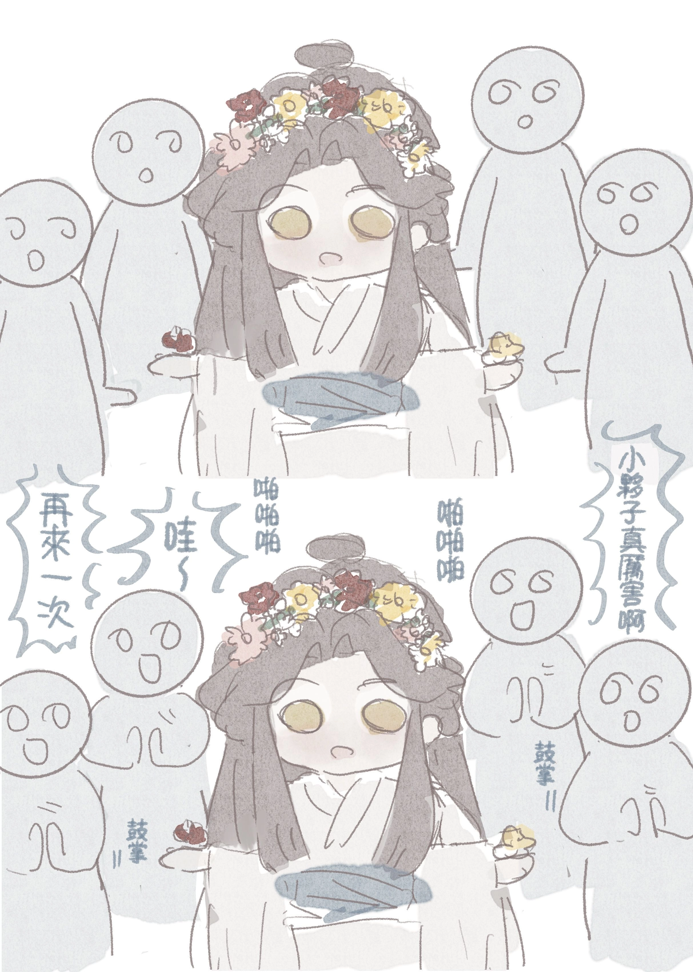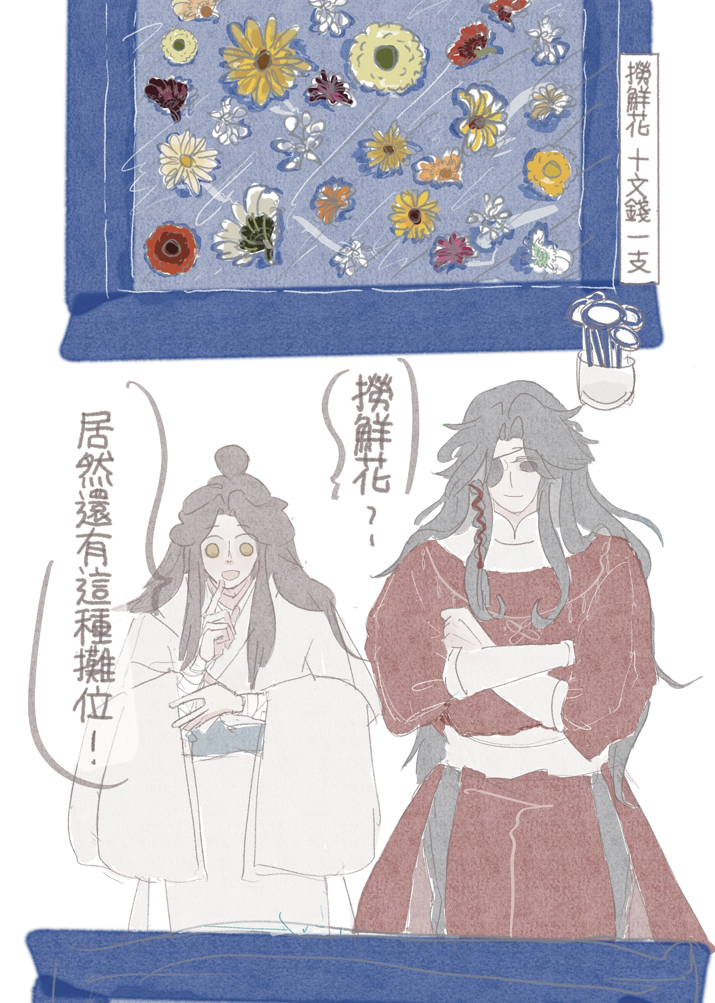 一共收錄逛夜市5p+出差禮物10p+幫太子妃除穢10p+太子殿下漫不經心6p+歌劇魅影paro 35p+小花女僕3p+實體限定內容絕境鬼王不安穩10p+碎念1p+小異插花1p+3p插畫(無名、白衣花、殿下)